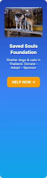 Saved Souls Foundation currently has a number of dogs and cats available for adoption. Each animal has been rescued from difficult circumstances, received veterinary care, and is ready to find a loving forever home. The foundation facilitates both local adoptions within Thailand and international adoptions for verified adopters abroad.
